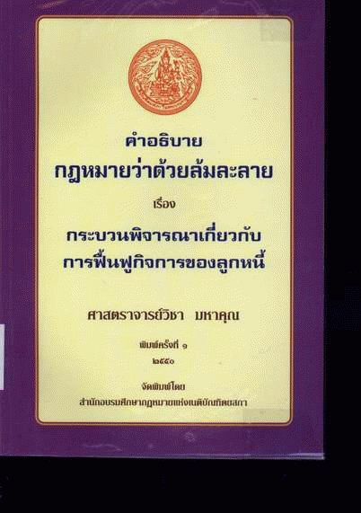 คำอธิบายกฎหมายว่าด้วยล้มละลายเรื่อง กระบวนพิจารณาเกี่ยวกับการฟื้นฟูกิจการของลูกหนี้ / วิชา มหาคุณ.