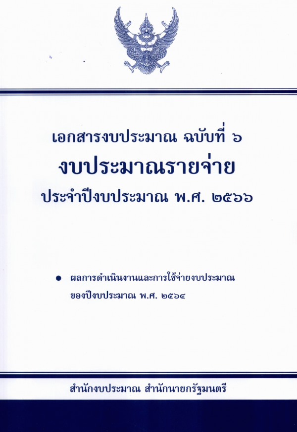 เอกสารงบประมาณ ฉบับที่ 6 งบประมาณรายจ่าย ประจำปีงบประมาณ พ.ศ. 2566 ผลการดำเนินงานและการใช้จ่ายงบประมาณของปีงบประมาณ พ.ศ. 2564 / สำนักงบประมาณ.