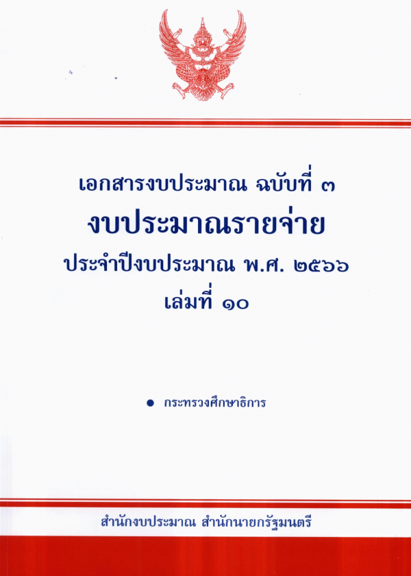 เอกสารงบประมาณ ฉบับที่ 3 งบประมาณรายจ่าย ประจำปีงบประมาณ พ.ศ. 2566 เล่มที่ 10 กระทรวงศึกษาธิการ / สำนักงบประมาณ.