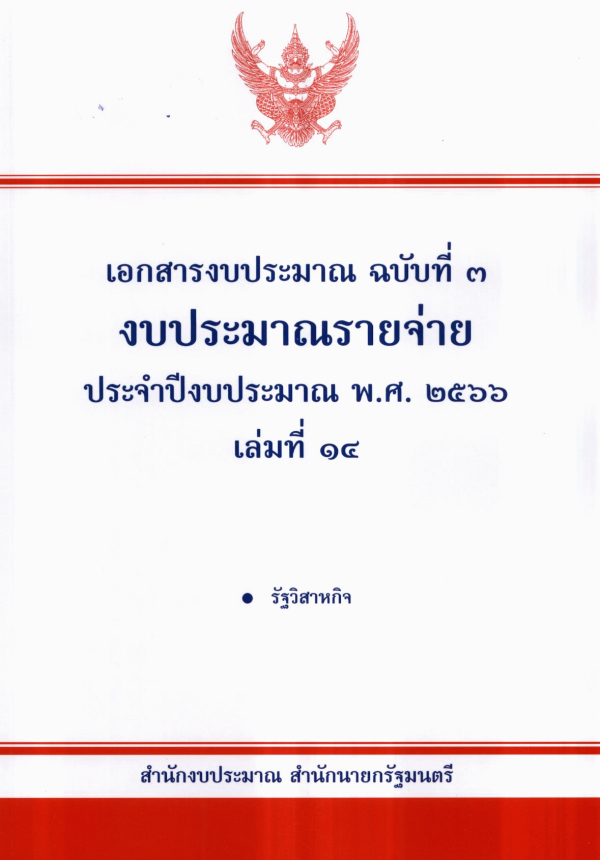 เอกสารงบประมาณ ฉบับที่ 3 งบประมาณรายจ่าย ประจำปีงบประมาณ พ.ศ. 2566 เล่มที่ 14 รัฐวิสาหกิจ / สำนักงบประมาณ.