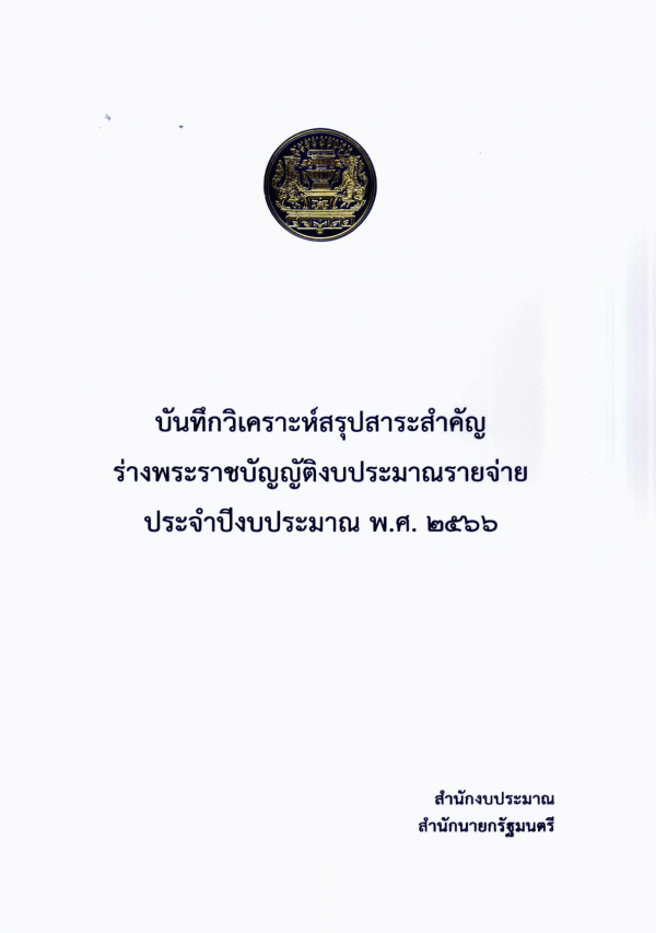 บันทึกวิเคราะห์สรุปสาระสำคัญร่างพระราชบัญญัติงบประมาณรายจ่าย ประจำปีงบประมาณ พ.ศ. 2566 / สำนักงบประมาณ.