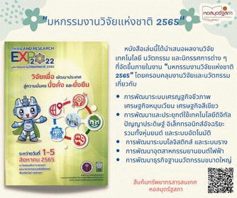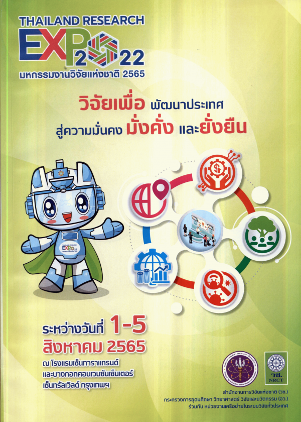 มหกรรมงานวิจัยแห่งชาติ 2565 : วิจัยเพื่อพัฒนาประเทศ สู่ความมั่นคง มั่งคั่ง และยั่งยืน ระหว่างวันที่ 1-5 สิงหาคม 2565 = Thailand research expo 2022 / สำนักงานการวิจัยแห่งชาติ (วช.).