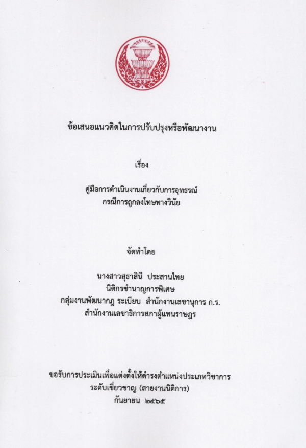 คู่มือการดำเนินงานเกี่ยวกับการอุทธรณ์ กรณีการถูกลงโทษทางวินัย / สุธาสินี ประสานไทย.