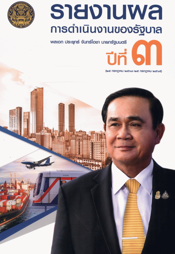 รายงานผลการดำเนินงานของรัฐบาล พลเอก ประยุทธ์ จันทร์โอชา นายกรัฐมนตรี ปีที่ 3 (25 กรกฎาคม 2564-25 กรกฎาคม 2565) / สำนักเลขาธิการนายกรัฐมนตรี สำนักนายกรัฐมนตรี.