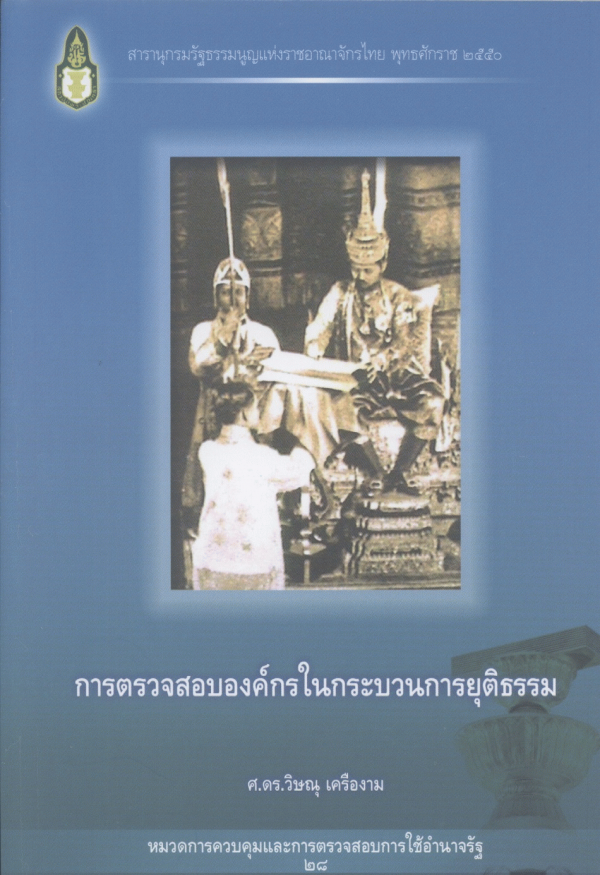 สารานุกรมรัฐธรรมนูญแห่งราชอาณาจักรไทย พุทธศักราช 2550 หมวดการควบคุมและการตรวจสอบการใช้อำนาจรัฐ เรื่อง 28 การตรวจสอบองค์กรในกระบวนการยุติธรรม / วิษณุ เครืองาม.