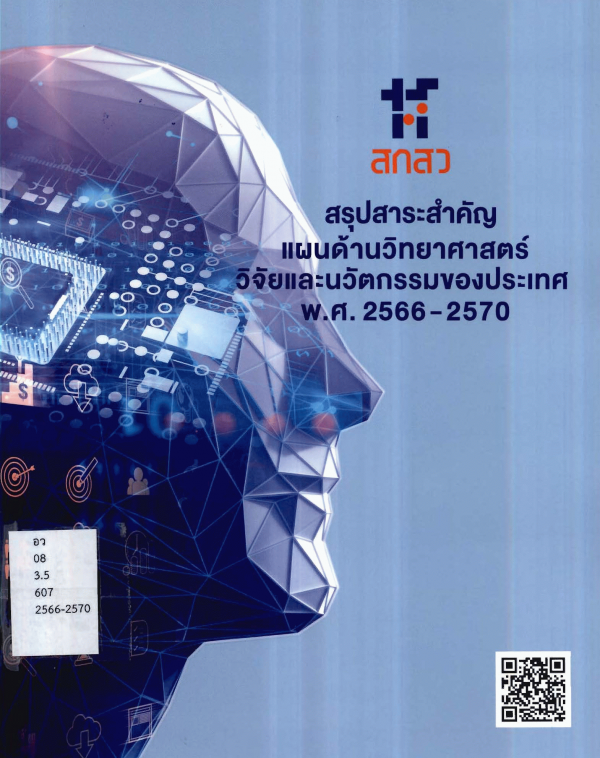 สรุปสาระสำคัญแผนด้านวิทยาศาสตร์วิจัยและนวัตกรรมของประเทศ พ.ศ. 2566-2570 / สำนักงานคณะกรรมการส่งเสริมวิทยาศาสตร์ วิจัยและนวัตกรรม (สกสว.).