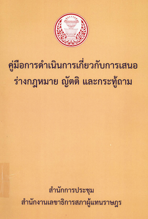 คู่มือการดำเนินการเกี่ยวกับการเสนอร่างกฎหมาย ญัตติ และกระทู้ถาม / สำนักการประชุม สำนักงานเลขาธิการสภาผู้แทนราษฎร.