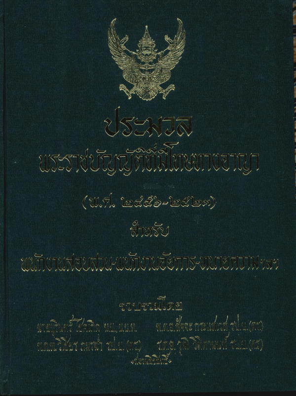ประมวลพระราชบัญญัติที่มีโทษทางอาญา (พ.ศ.2456-2523) สำหรับพนักงานสอบสวน-พนักงานอัยการ-ทนายความฯลฯ / บุรินทร์ โชคเกิด...[และคนอื่น ๆ].