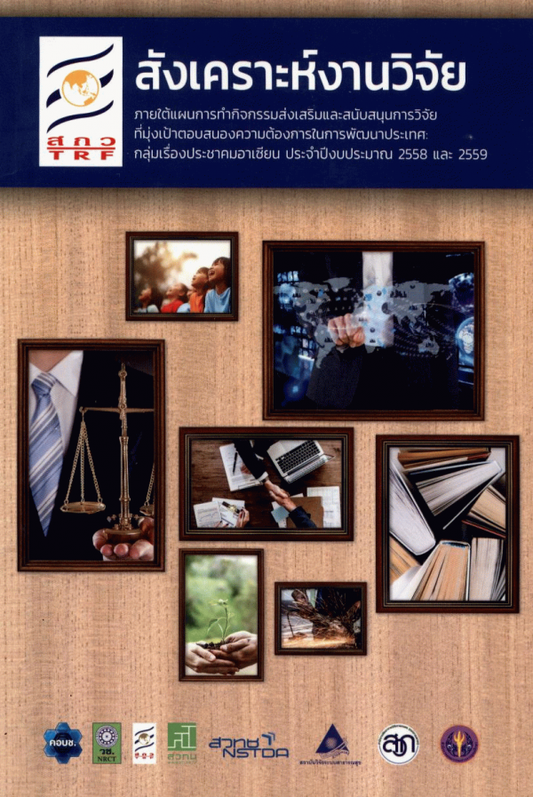 สังเคราะห์งานวิจัย ภายใต้แผนการทำกิจกรรมส่งเสริมและสนับสนุนการวิจัยที่มุ่งเป้าตอบสนองความต้องการในการพัฒนาประเทศ : กลุ่มเรื่องประชาคมอาเซียน ประจำปีงบประมาณ 2558-2559 / สำนักงานกองทุนสนับสนุนการวิจัย (สกว.).