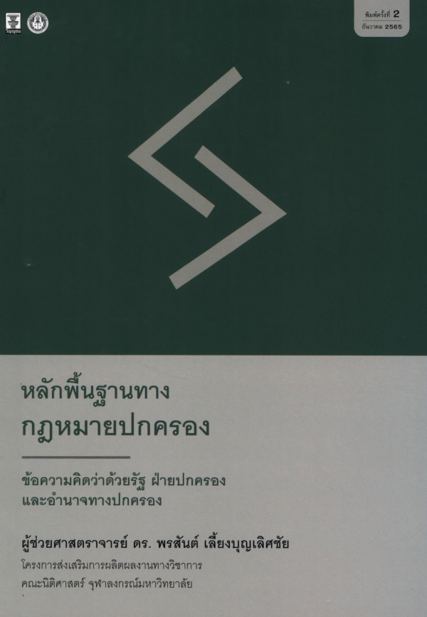 หลักพื้นฐานทางกฎหมายปกครอง ข้อความคิดว่าด้วยรัฐ ฝ่ายปกครอง และอำนาจทางปกครอง / พรสันต์ เลี้ยงบุญเลิศชัย.