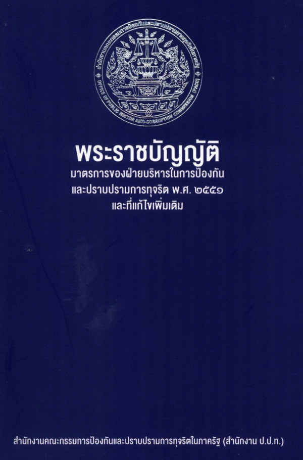 พระราชบัญญัติมาตรการของฝ่ายบริหารในการป้องกันและปราบปรามการทุจริต พ.ศ. 2551 และที่แก้ไขเพิ่มเติม / สำนักงานคณะกรรมการป้องกันและปราบปรามการทุจริตในภาครัฐ (สำนักงาน ป.ป.ท.).