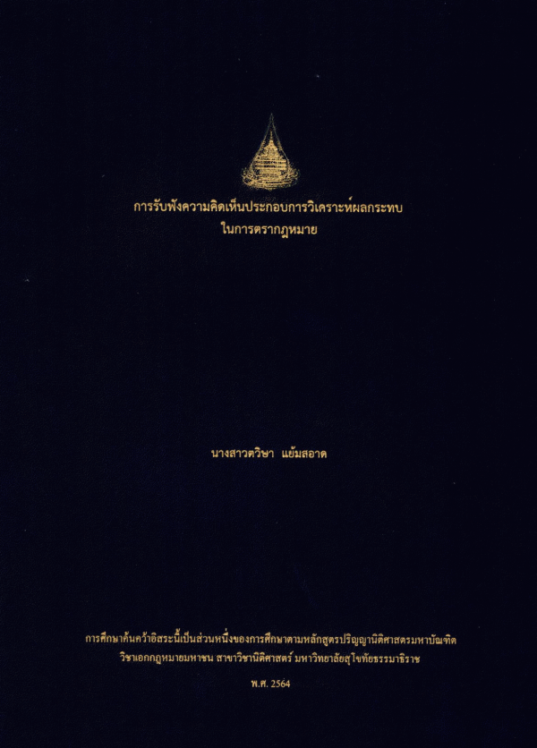การรับฟังความคิดเห็นประกอบการวิเคราะห์ผลกระทบในการตรากฎหมาย / ตวิษา แย้มสอาด.