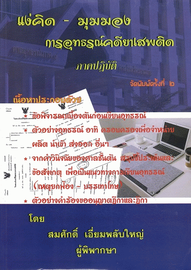 แง่คิด - มุมมอง การอุทธรณ์คดียาเสพติด ภาคปฏิบัติ / โดย สมศักดิ์ เอี่ยมพลับใหญ่.
