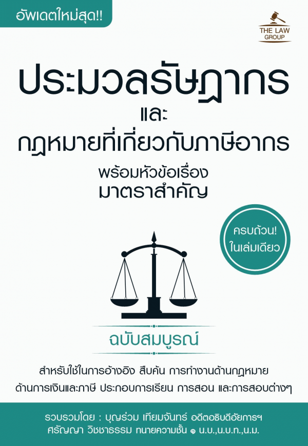 รวบรวมประมวลรัษฎากร และกฎหมายที่เกี่ยวกับภาษีอากรไว้อย่างครบถ้วนสมบูรณ์ เนื้อหาเรียบเรียงเป็นหมวดหมู่ชัดเจน เข้าใจง่าย พิเศษ!! มีสรุปหัวข้อเรื่องไว้ในมาตราสำคัญ เหมาะสำหรับนิสิต นักศึกษา ครู อาจารย์ นักกฎหมาย ผู้ที่ทำงานด้าน การเงิน การธนาคาร บัญชี ภาษีอากร รวมถึงตำรวจ ทหาร ผู้พิพากษา อัยการ ตุลาการ ผู้ที่จะสอบเข้าหน่วยงานราชการ รัฐวิสาหกิจ และในองค์กรต่างๆ รวมถึงประชาชนทั่วไป.