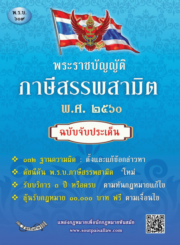 พระราชบัญญัติภาษีสรรพสามิต -- 1. ยุทธวิธีใช้กฎหมายที่ง่าย ตรง เร็ว = ฐานความผิด : การตั้งและแก้ข้อกล่าวหา -- 2. ตัวบทกฎหมายจับประเด็น = เน้นประเด็นหลักแต่ละมาตราของกฎหมายฉบับนี้ -- 3. ดัชนีค้น กฎหมายสรรพสามิต = เข้าถึง พ.ร.บ. ภาษีสรรพสามิต โยง 1 กับ 3. -- 4. ภาคผนวก กรมสรรพากร.