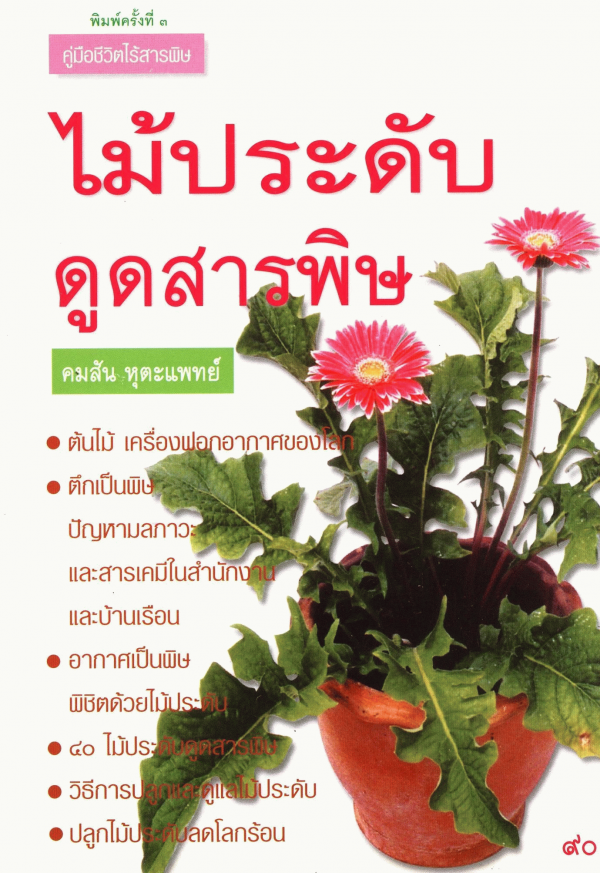 หนังสือไม้ประดับดูดสารพิษ คงจะเป็นประโยชน์ต่อท่านในการนำไปเป็นอีกทางเลือกหนึ่งในการทำให้อากาศและสิ่งแวดล้อมภายในสำนักงานและบ้านเรือนของท่านบริสุทธิ์ รู้สึกสดชื่นและมั่นใจทุกครั้งที่สูดหายใจเข้าไป.