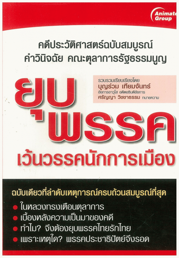 ยุบพรรค เว้นวรรคนักการเมือง : คดีประวัติศาสตร์ฉบับสมบูรณ์ คำวินิจฉัย คณะตุลาการรัฐธรรมนูญ / บุญร่วม เทียมจันทร์, ศรัญญา วิชชาธรรม. [electronic resource]
