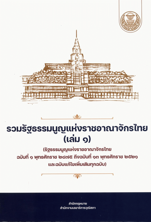 รวมรัฐธรรมนูญแห่งราชอาณาจักรไทย (เล่ม 1) (รัฐธรรมนูญแห่งราชอาณาจักรไทย ฉบับที่ 1 พุทธศักราช 2475 ถึงฉบับที่ 13 พุทธศักราช 2521 และฉบับแก้ไขเพิ่มเติมทุกฉบับ) / กลุ่มงานพัฒนากฎหมาย สำนักกฎหมาย สำนักงานเลขาธิการวุฒิสภา.