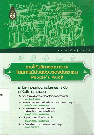 การให้บริการสาธารณะโดยการมีส่วนร่วมของประชาชน People's audit เอกสารการเรียนรู้ หน่วยที่ 3 : การค้นหาความต้องการในการยกระดับการให้บริการสาธารณะ / บรรณาธิการ ถวิลวดี บุรีกุล และวิศิษฏ ชัชวาลทิพากร.