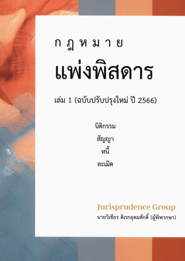 - กฎหมายแพ่งพิสดาร เล่ม 1 (ฉบับปรับปรุงใหม่ ปี 2566) นิติกรรม สัญญา หนี้ ละเมิด [Cover title]
