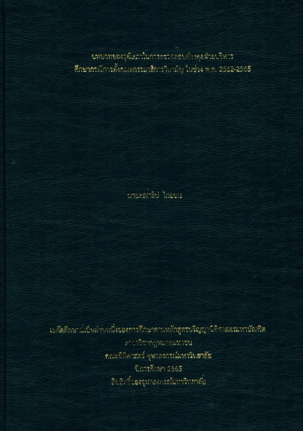 บทบาทของวุฒิสภาในการตรวจสอบถ่วงดุลฝ่ายบริหาร ศึกษากรณีการตั้งคณะกรรมาธิการวิสามัญ ในช่วง พ.ศ. 2562-2565 / คณาธิป ไกยชน.