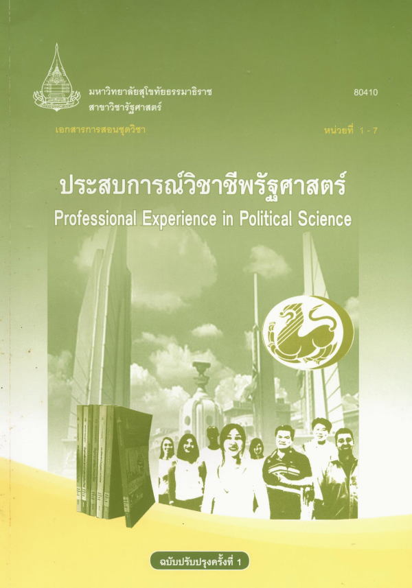 เอกสารการสอนชุดวิชา ประสบการณ์วิชาชีพรัฐศาสตร์ หน่วยที่ 1-7 / สาขาวิชารัฐศาสตร์ มหาวิทยาลัยสุโขทัยธรรมาธิราช.