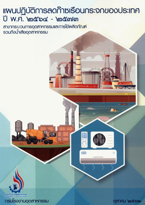 แผนปฏิบัติการลดก๊าซเรือนกระจกของประเทศ ปี พ.ศ. 2564-2573 สาขากระบวนการอุตสาหกรรมและการใช้ผลิตภัณฑ์รวมถึงน้ำเสียอุตสาหกรรม / กรมโรงงานอุตสาหกรรม กระทรวงอุตสาหกรรม.
