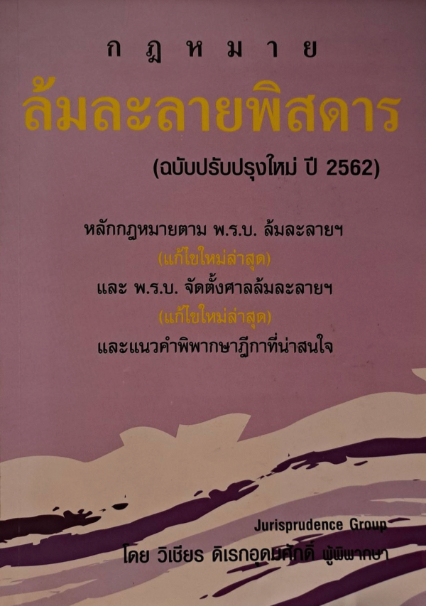 - กฎหมาย ล้มละลายพิสดาร (ฉบับปรับปรุงใหม่ปี 2562) หลักกฎหมายตาม พ.ร.บ. ล้มละลายฯ (แก้ไขใหม่ล่าสุด) และ พ.ร.บ. จัดตั้งศาลล้มละลายฯ (แก้ไขใหม่ล่าสุด) และแนวคำพิพากษาฎีกาที่น่าสนใจ [Cover title]