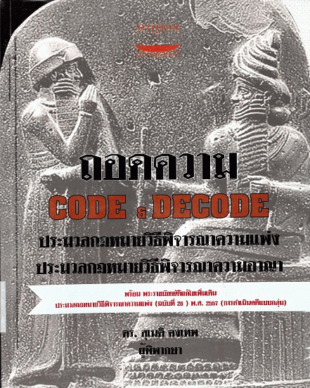 ถอดความ Code & Decode ประมวลกฎหมายวิธีพิจารณาความแพ่ง ประมวลกฎหมายวิธีพิจารณาความอาญา พร้อมพระราชบัญญัติแก้ไขเพิ่มเติมประมวลกฎหมายวิธีพิจารณาความแพ่ง (ฉบับที่ 26) พ.ศ. 2557 (การดำเนินคดีแบบกลุ่ม) / สุเนติ คงเทพ.