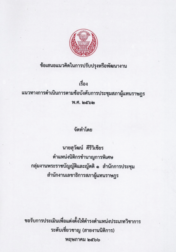 แนวทางการดำเนินการตามข้อบังคับการประชุมสภาผู้แทนราษฎร พ.ศ. 2562 / สุวัฒน์ คีรีวิเชียร.