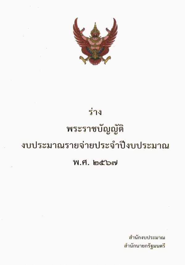 ร่างพระราชบัญญัติงบประมาณรายจ่ายประจำปีงบประมาณ พ.ศ. 2567 / สำนักงบประมาณ.