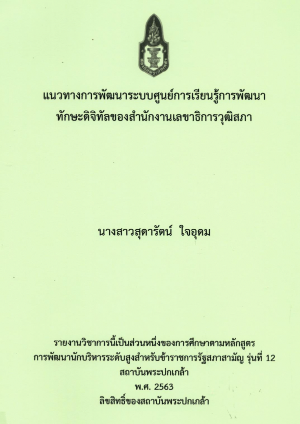 แนวทางการพัฒนาระบบศูนย์การเรียนรู้การพัฒนาทักษะดิจิทัลของสำนักงานเลขาธิการวุฒิสภา / สุดารัตน์ ใจอุดม ; สถาบันพระปกเกล้า.