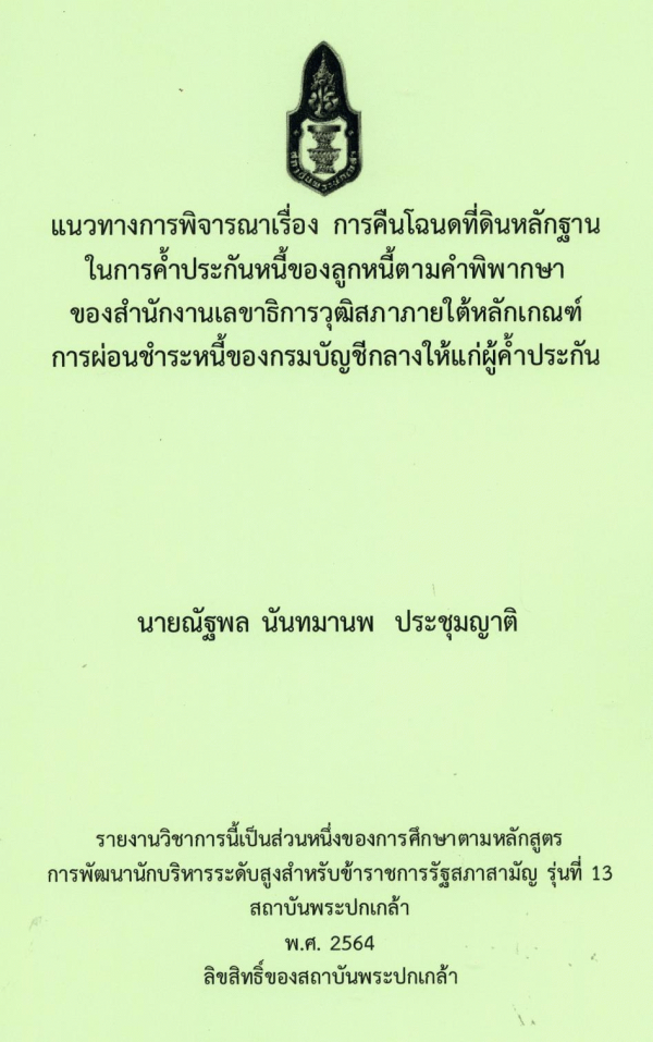 National Assembly Library of Thailand | Individual Studies collection | Individual Studies corner | IS 13/2564 22 (เรียกดูชั้นหนังสือ(เปิดด้านล่าง)) | พร้อมให้บริการ | 3961222553 |
