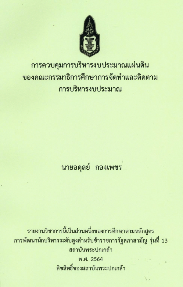 การควบคุมการบริหารงบประมาณแผ่นดินของคณะกรรมาธิการศึกษาการจัดทำและติดตามการบริหารงบประมาณ / อดุลย์ กองเพชร ; สถาบันพระปกเกล้า.