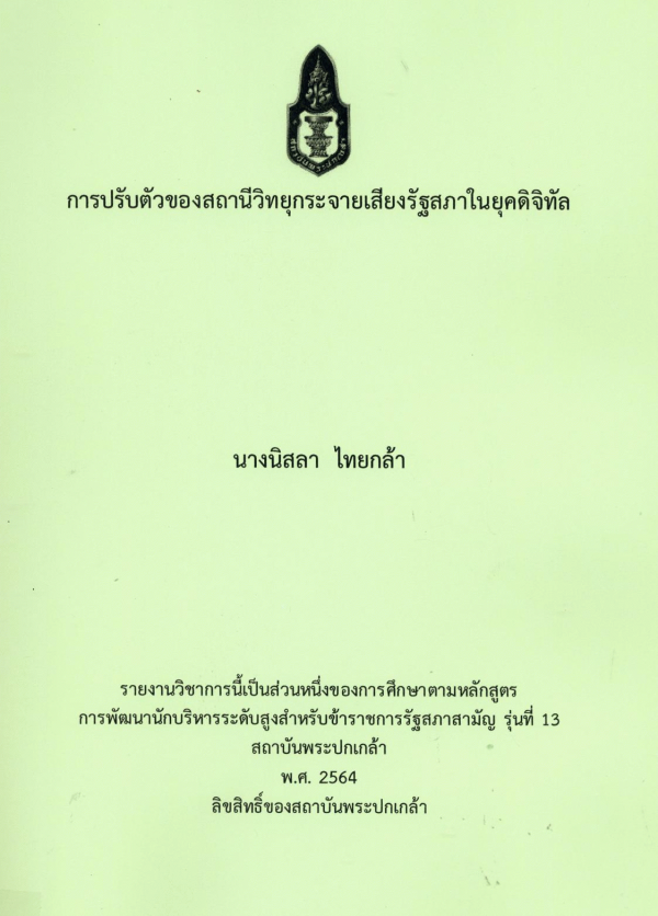 การปรับตัวของสถานีวิทยุกระจายเสียงรัฐสภาในยุคดิจิทัล / นิสลา ไทยกล้า ; สถาบันพระปกเกล้า.