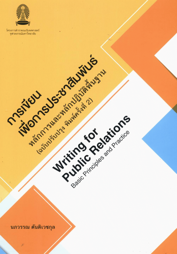 การเขียนเพื่อการประชาสัมพันธ์ หลักการและหลักปฏิบัติพื้นฐาน = Writing for public relations : basic principles and practice / นภวรรณ ตันติเวชกุล.