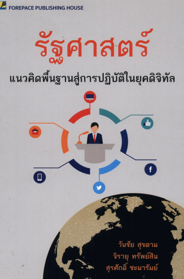 รัฐศาสตร์ แนวคิดพื้นฐานสู่การปฏิบัติในยุคดิจิทัล / โดย วันชัย สุขตาม, จิรายุ ทรัพย์สิน, สุรศักดิ์ ชะมารัมย์.