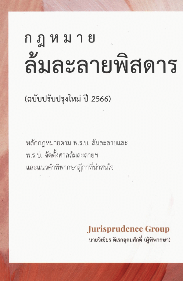 - กฎหมายล้มละลายพิสดาร (ฉบับปรับปรุงใหม่ ปี 2566) หลักกฎหมายตาม พ.ร.บ. ล้มละลายและ พ.ร.บ. จัดตั้งศาลล้มละลายฯ และแนวคำพิพากษาฎีกาที่น่าสนใจ [Cover title]