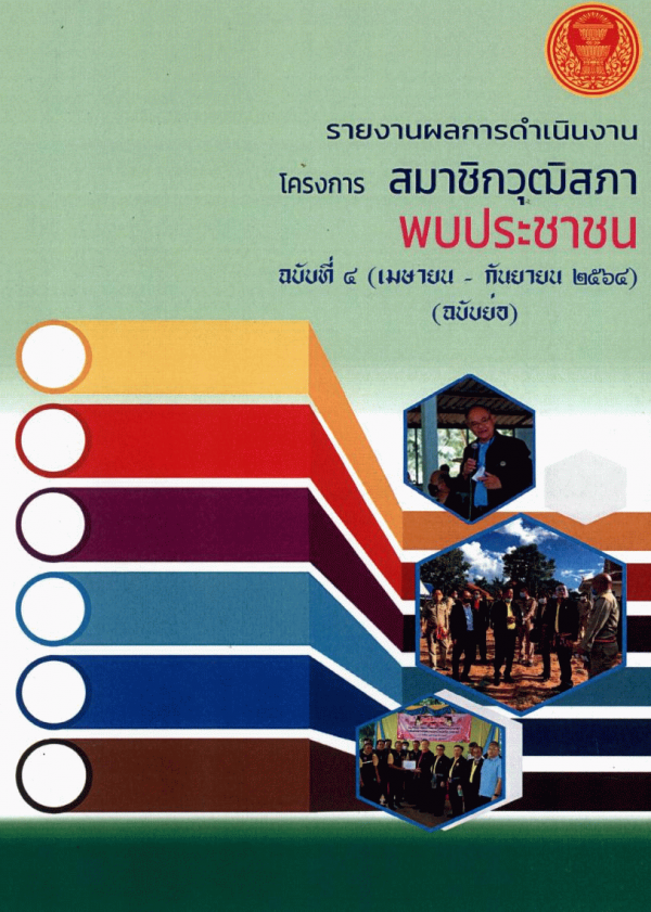 โครงการผลการดำเนินงานโครงการสมาชิกวุฒิสภาพบประชาชน ฉบับที่ 4 (เมษายน - กันยายน 2564) (ฉบับย่อ) / สำนักวิชาการ สำนักงานเลขาธิการวุฒิสภา.