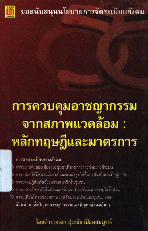 การควบคุมอาชญากรรมจากสภาพแวดล้อม : หลักทฤษฎีและมาตรการ / ปุระชัย เปี่ยมสมบูรณ์.