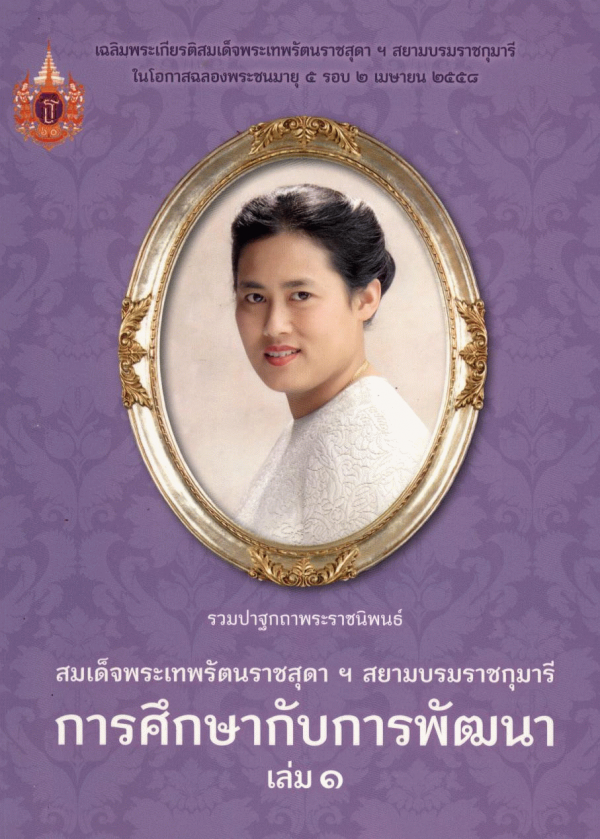 รวมปาฐกถาพระราชนิพนธ์ สมเด็จพระเทพรัตนราชสุดา ฯ สยามบรมราชกุมารี : การศึกษากับการพัฒนา เล่มที่ 1 / มูลนิธิสมเด็จพระเทพรัตนราชสุดา.