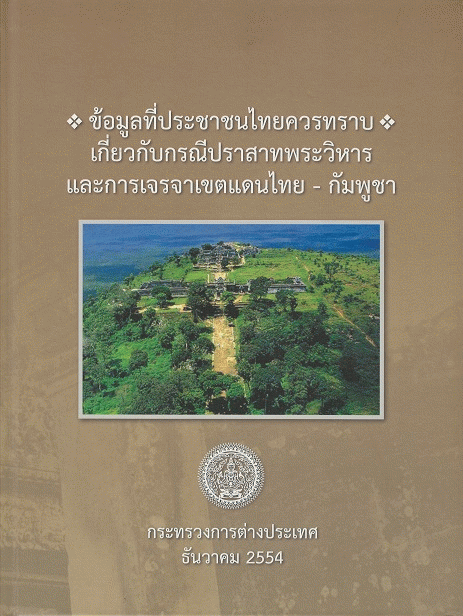 ข้อมูลที่ประชาชนไทยควรทราบเกี่ยวกับกรณีปราสาทพระวิหารและการเจรจาเขตแดนไทย - กัมพูชา / กระทรวงการต่างประเทศ.
