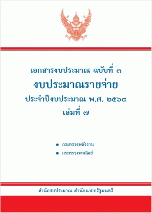 เอกสารงบประมาณ ฉบับที่ 3 งบประมาณรายจ่าย ประจำปีงบประมาณ พ.ศ. 2568 เล่มที่ 7 กระทรวงพลังงาน กระทรวงพาณิชย์ / สำนักงบประมาณ.
