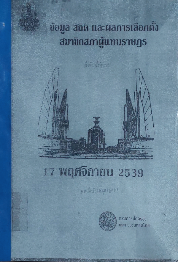 ข้อมูล สถิติ และผลการเลือกตั้งสมาชิกสภาผู้แทนราษฎร 17 พฤศจิกายน 2539 / กรมการปกครอง กระทรวงมหาดไทย.