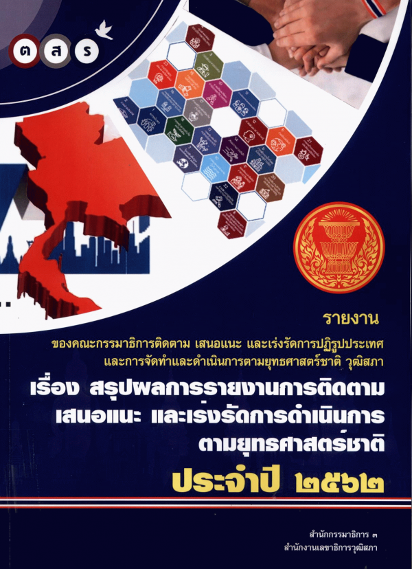 รายงานของคณะกรรมาธิการติดตาม เสนอแนะ และเร่งรัดการปฏิรูปประเทศ และการจัดทำและดำเนินการตามยุทธศาสตร์ชาติ วุฒิสภา เรื่อง สรุปผลการรายงานการติดตาม เสนอแนะ และเร่งรัดการดำเนินการตามยุทธศาสตร์ชาติ ประจำปี 2562 / สำนักกรรมาธิการ 3 สำนักงานเลขาธิการวุฒิสภา.