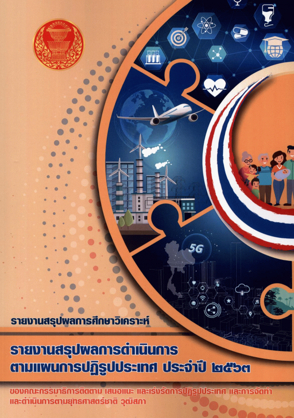 รายงานสรุปผลการศึกษาวิเคราะห์ รายงานสรุปผลการดำเนินการตามแผนการปฏิรูปประเทศ ประจำปี 2563 ของคณะกรรมาธิการติดตาม เสนอแนะ และเร่งรัดการปฏิรูปประเทศ และการจัดทำและดำเนินการตามยุทธศาสตร์ชาติ วุฒิสภา / สำนักกรรมาธิการ 3 สำนักงานเลขาธิการวุฒิสภา.