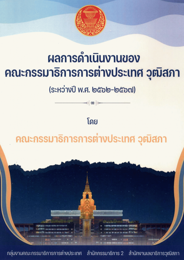 ผลการดำเนินงานของคณะกรรมาธิการการต่างประเทศ วุฒิสภา (ระหว่างปี พ.ศ. 2562-2567) โดยคณะกรรมาธิการการต่างประทศ วุฒิสภา / กลุ่มงานคณะกรรมาธิการการต่างประเทศ สำนักกรรมาธิการ 2 สำนักงานเลขาธิการวุฒิสภา.