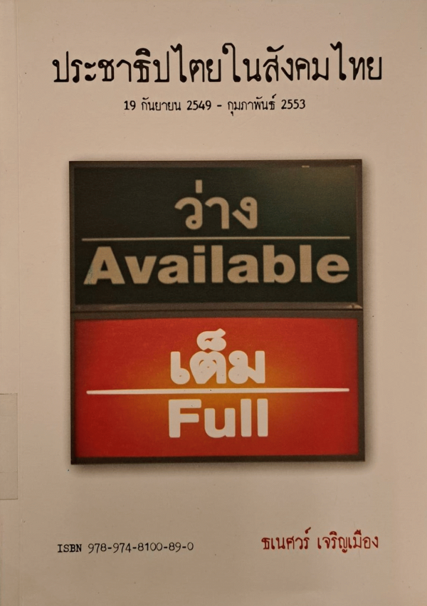 ประชาธิปไตยในสังคมไทย (19 กันยายน 2549 - กุมภาพันธ์ 2553) / ธเนศวร์ เจริญเมือง.