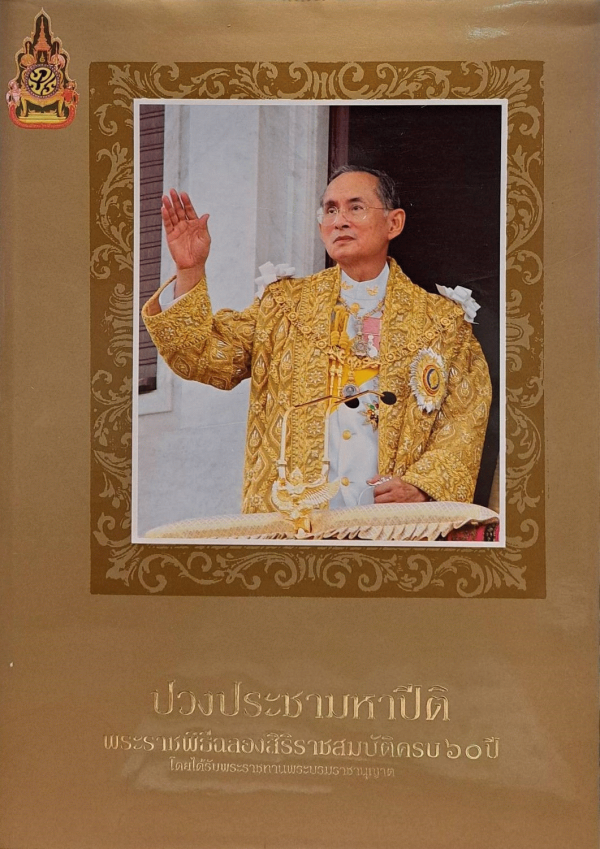 ปวงประชามหาปีติ : ประมวลภาพพระราชพิธีฉลองสิริราชสมบัติครบ 60 ปี พระบาทสมเด็จพระเจ้าอยู่หัวภูมิพลอดุลยเดช 8-13 มิถุนายน พุทธศักราช 2549 / จัดทำโดย คณะกรรมการอำนวยการจัดงานฉลองสิริราชสมบัติครบ 60 ปี และกรมประชาสัมพันธ์.