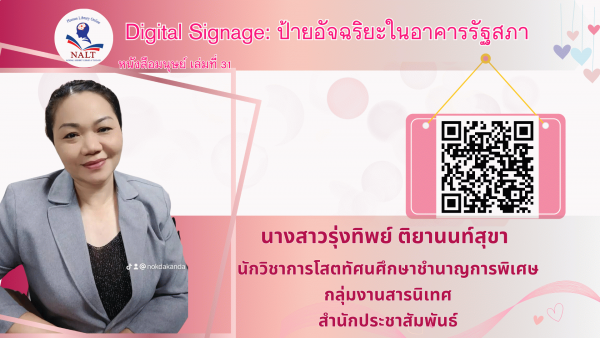 หนังสือมนุษย์ เล่มที่ 31 Digital Signage ป้ายอัจฉริยะในอาคารรัฐสภา / รุ่งทิพย์ ติยานนท์สุขา.